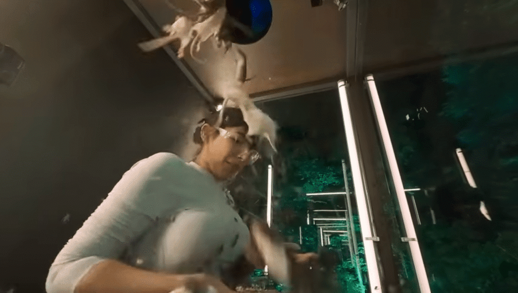 Animals are hit and roughly handled. In one clip, a handler uses a rope to agitate a bull’s neck while another person behind the scenes calls the bull obscene names.